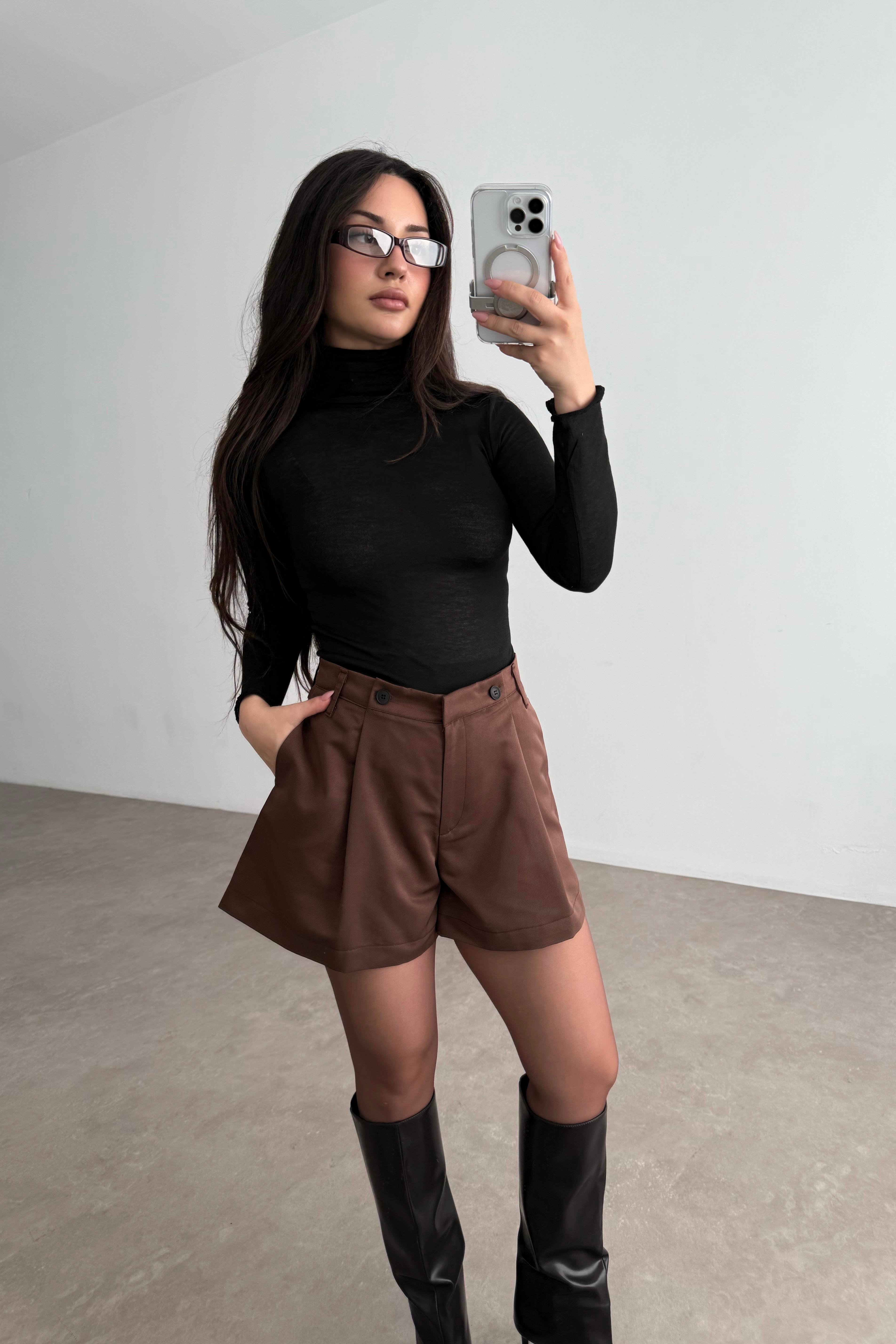 Düğme Detaylı Geniş Paça Kahve Şort Düğme Detaylı Geniş Paça Ekru Şort