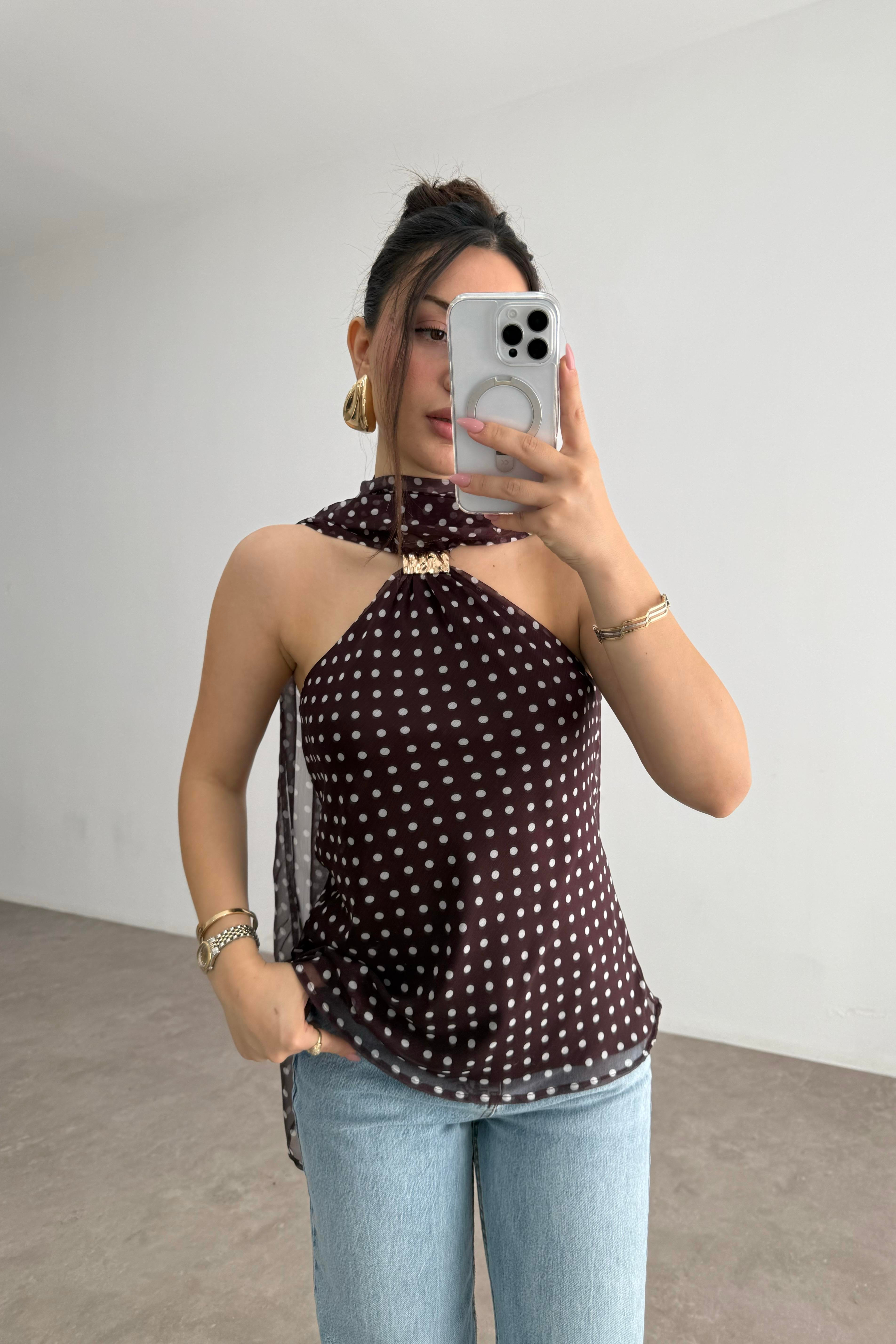Şifon puantiyeli kumaş ve altı saten kumaştan .gold tokalı bluz. 165 boy 57 kg M beden kullanılmıştır. Tam kalıptır kendi bedeninizi tercih edebilirsiniz.