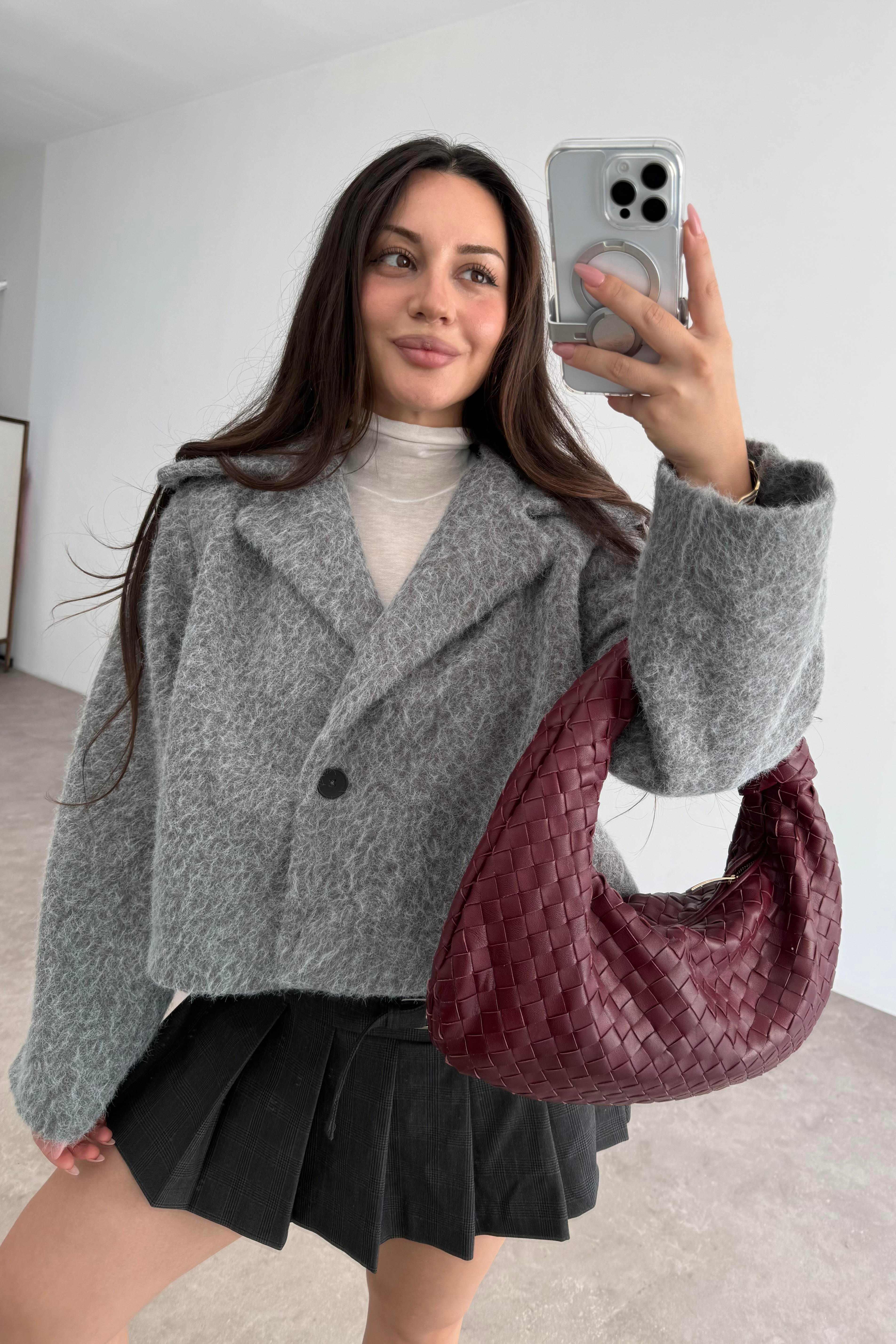 Kruvaze Kırçıllı Yün Soft Gri Ceket