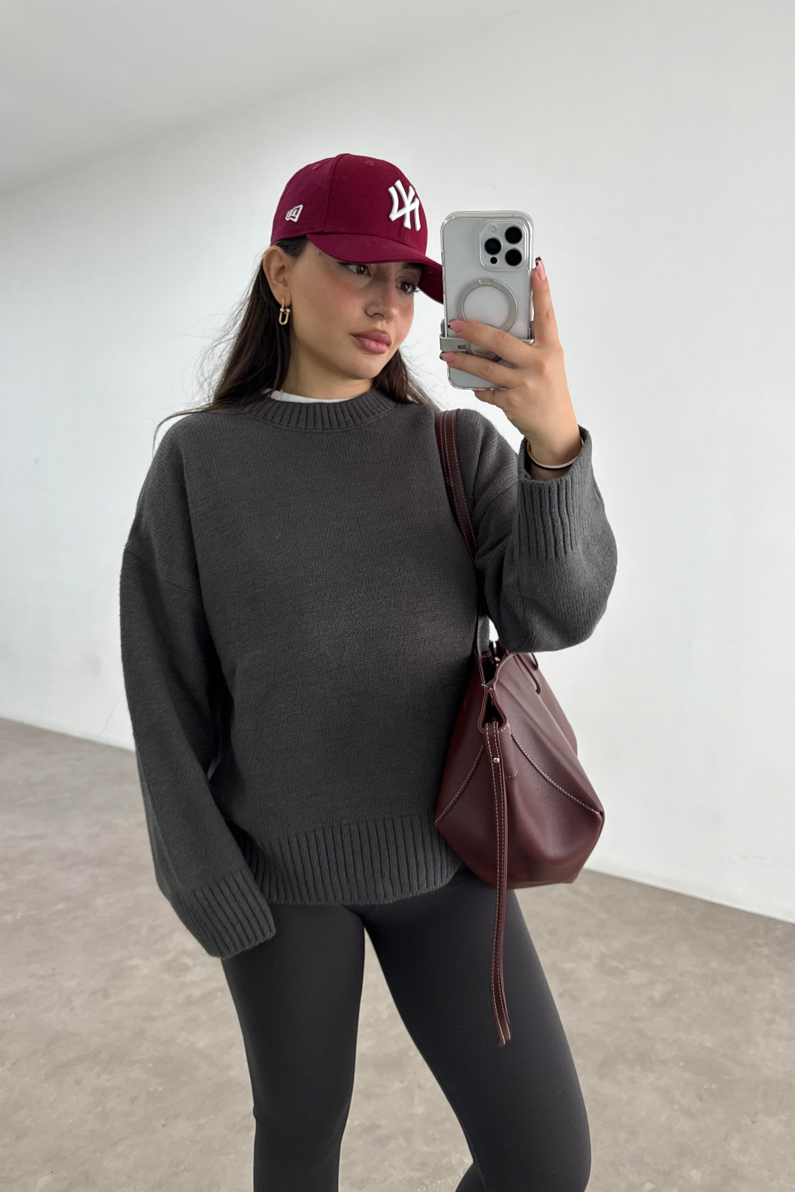 Mssmo Yuvarlak Yaka Triko Kazak Füme