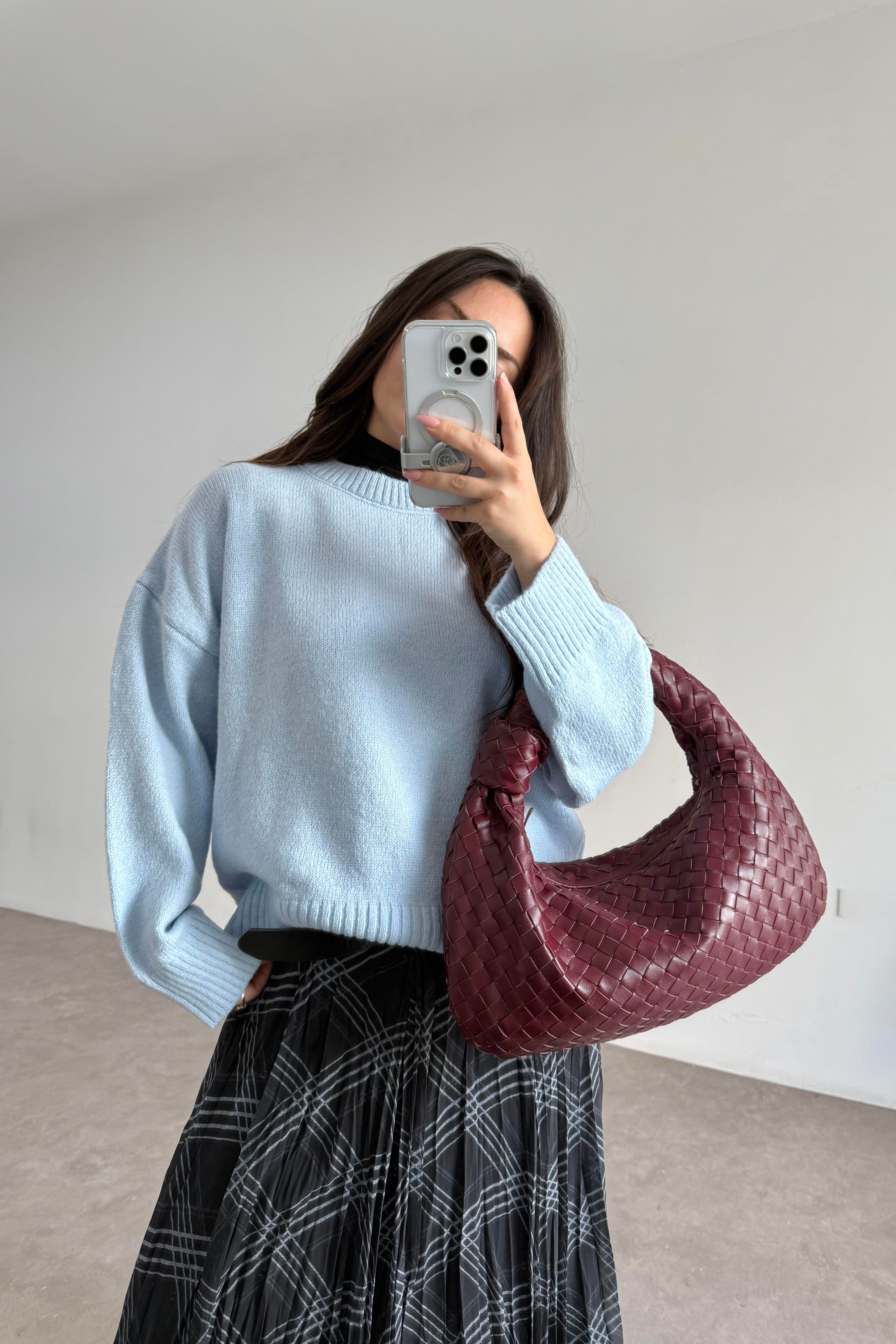 Mssmo Yuvarlak Yaka Triko Kazak Mavi