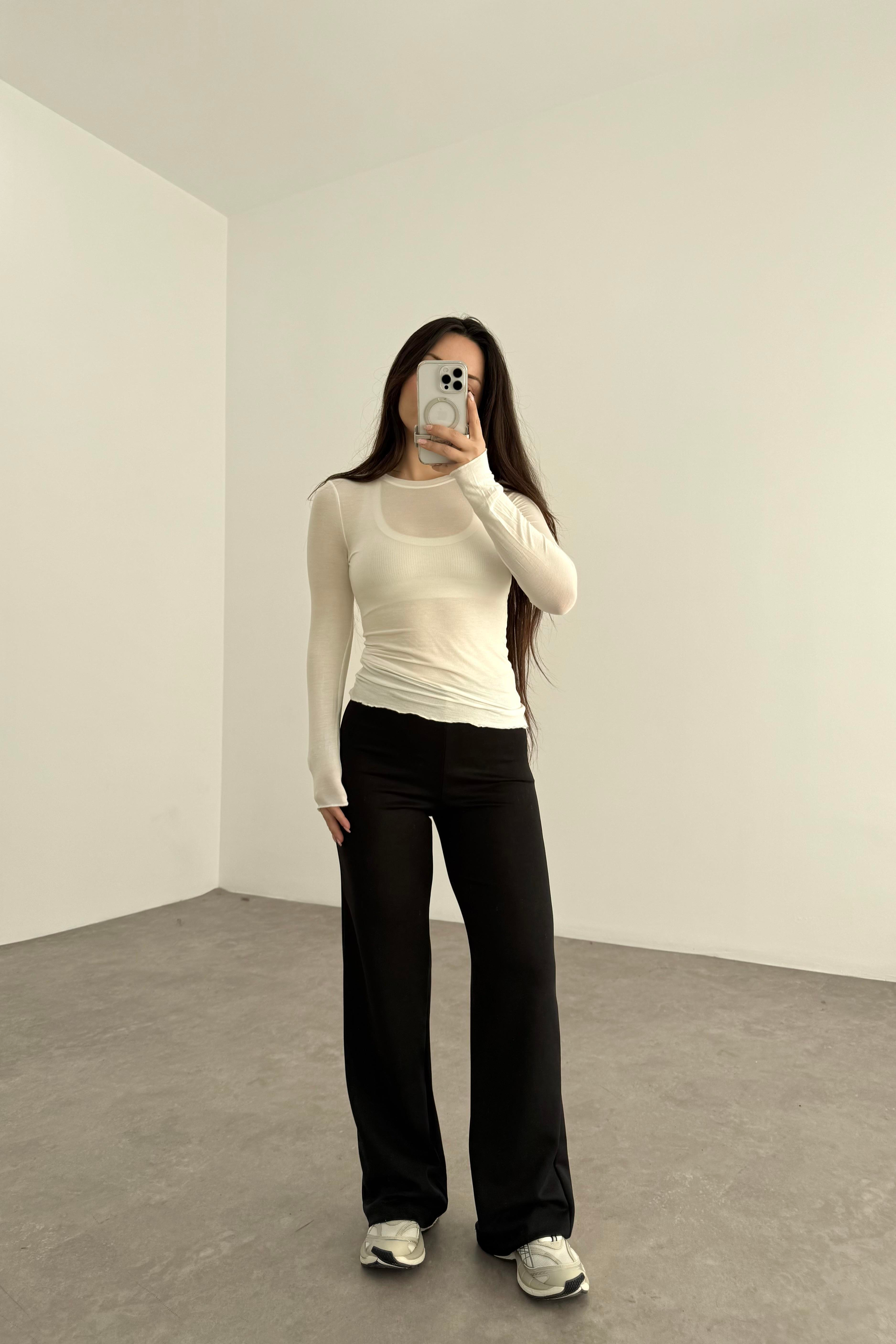 Oys. Modal Likralı Yüksek Belli Siyah Spor Pantolonu