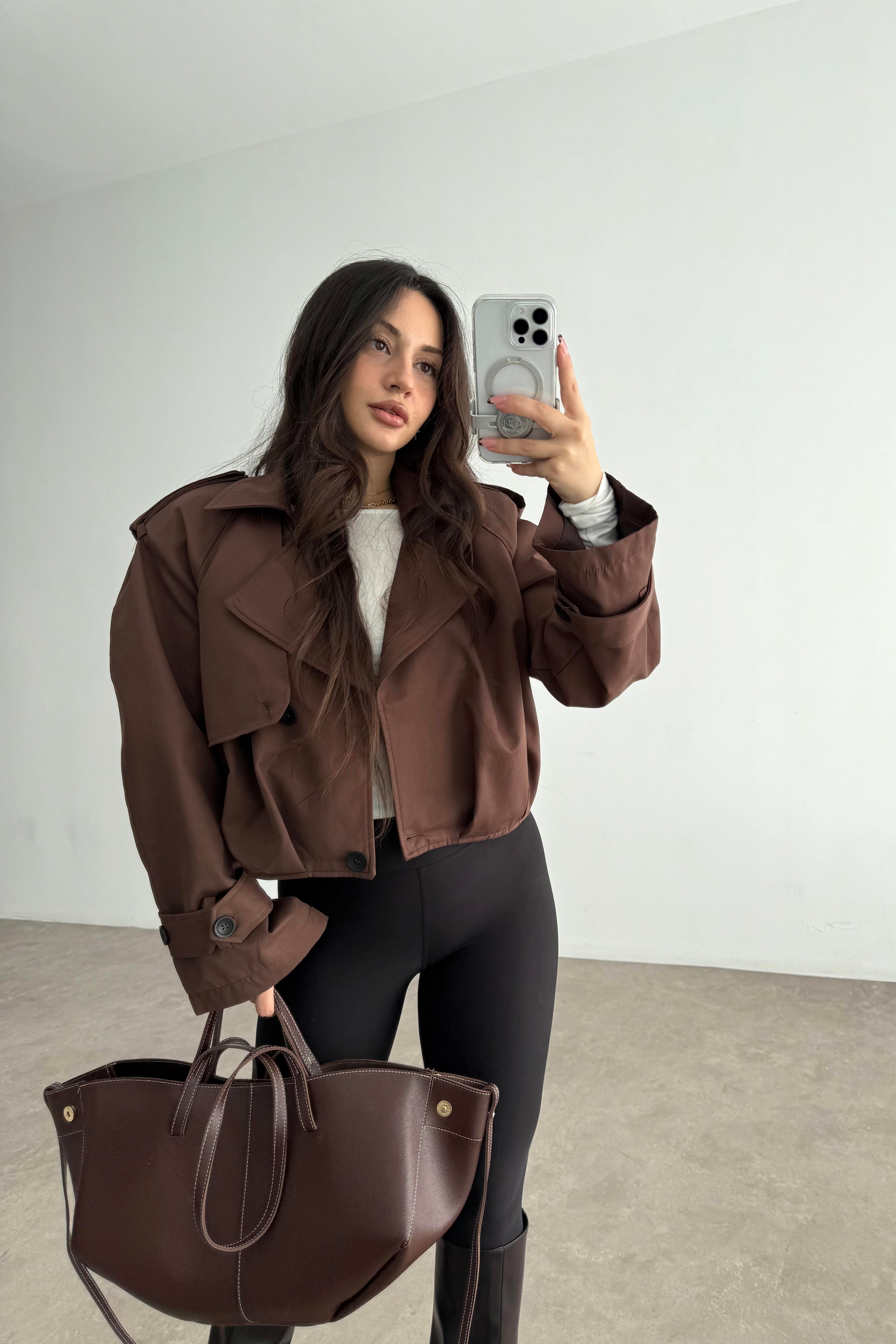 Premium Kalite Vatkalı Acı KahveTrenç Ceket