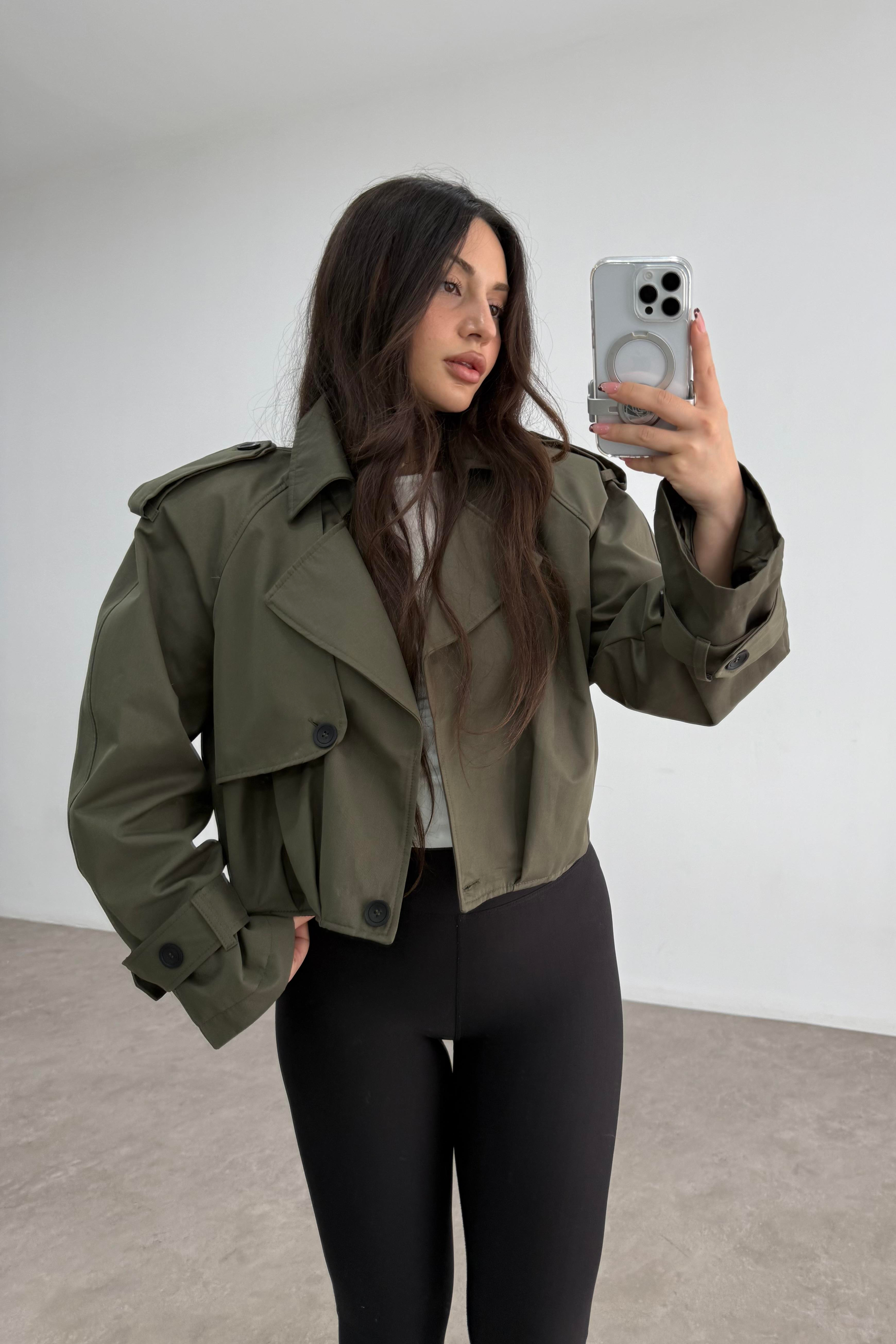 Premium Kalite Vatkalı Haki Trenç Ceket