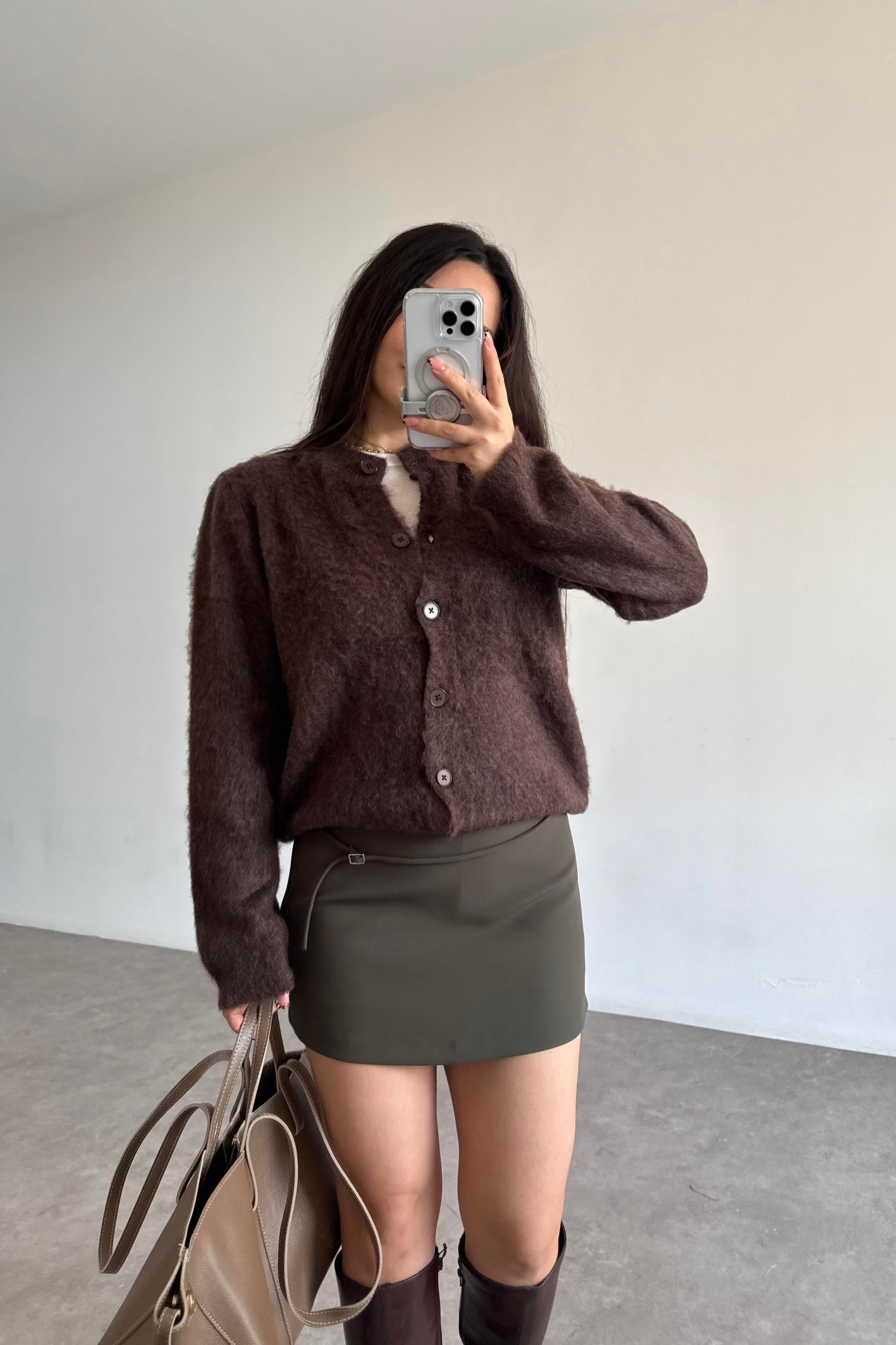 Premium Krep İçi Şortlu Yüksek Belli Haki Etek