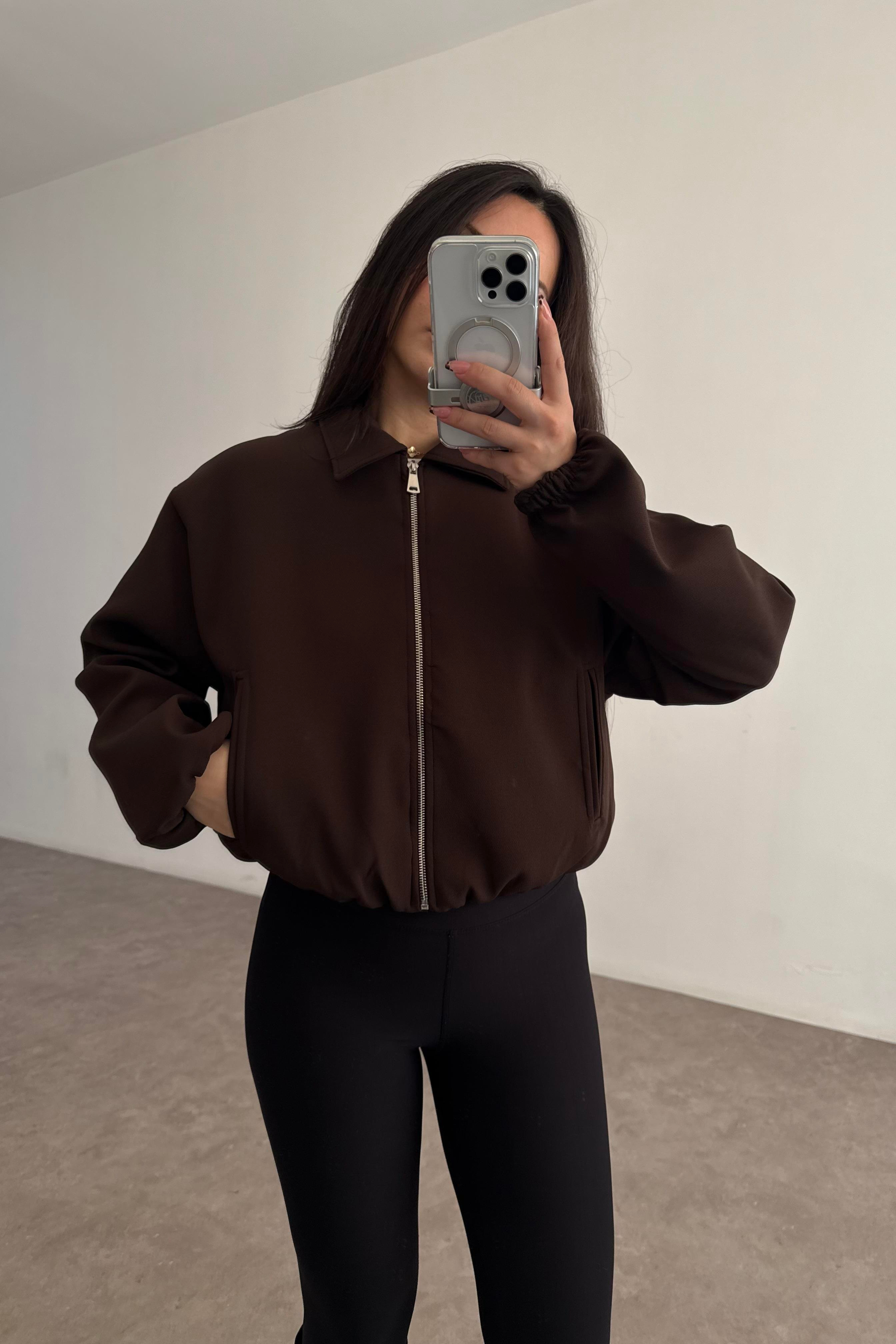 Yakalı Bomber Kalın Koyu Kahve Ceket