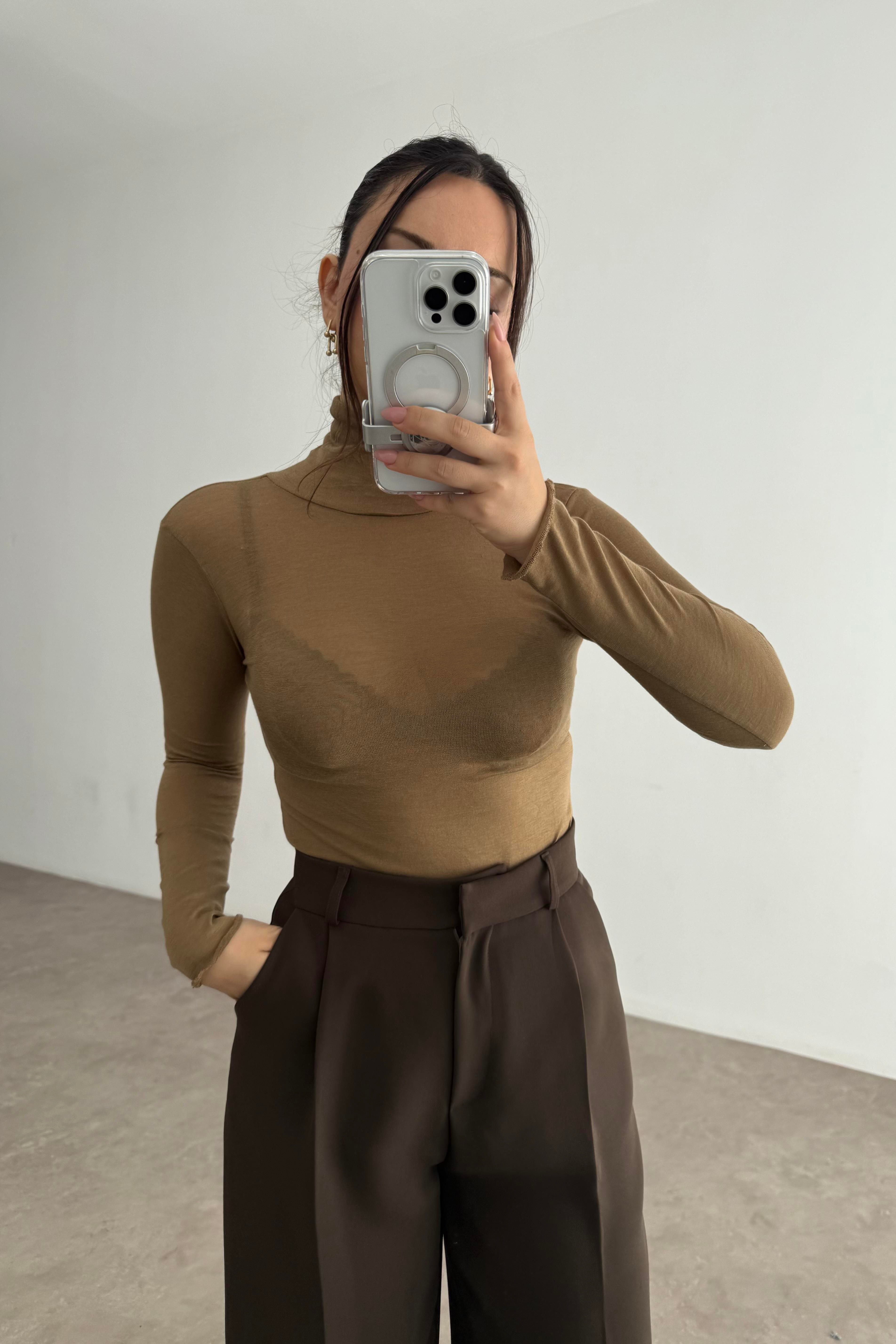 Yarı Transparan Pamuklu Boğazlı Toprak Body