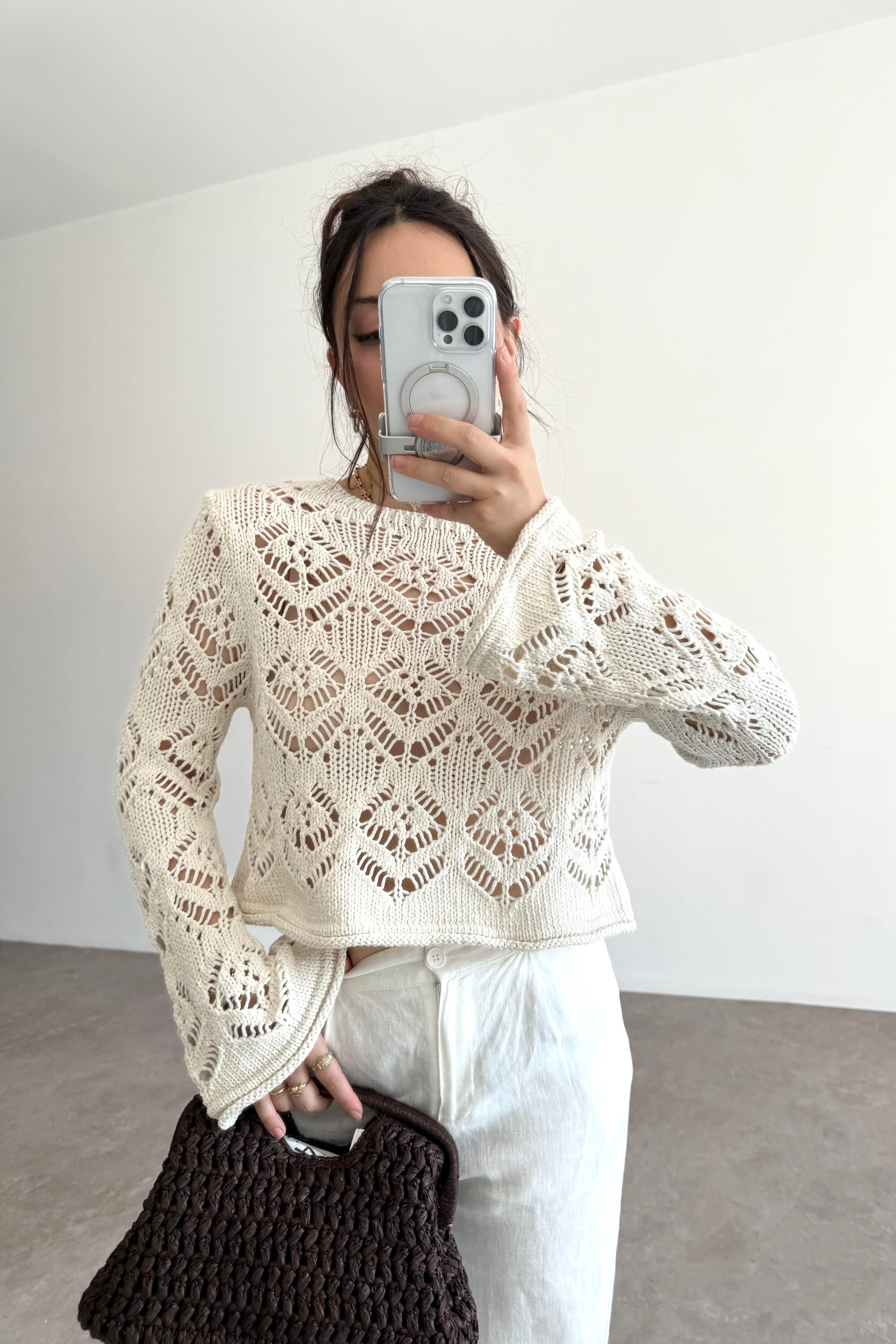 Zra Orj. Örgü File Detaylı Krem Kazak, sadece göz alıcı tasarımıyla değil, aynı zamanda sunduğu üstün konforla da ön plana çıkıyor. Krem renginin zamansız asilliği, her türlü kombinasyonunuza kolayca uyum sağlar. İster günlük kullanımda jeanlerle, ister özel anlarda etek veya pantolonlarla kombinleyin; her durumda stilinizi en iyi şekilde yansıtmanızı sağlar. Örgü file detayları, bu triko kazak modeline hareket ve derinlik katarken, aynı zamanda modern bir hava yaratır. Üstün kumaş kalitesi sayesinde gün boyu rahatlık sunar.